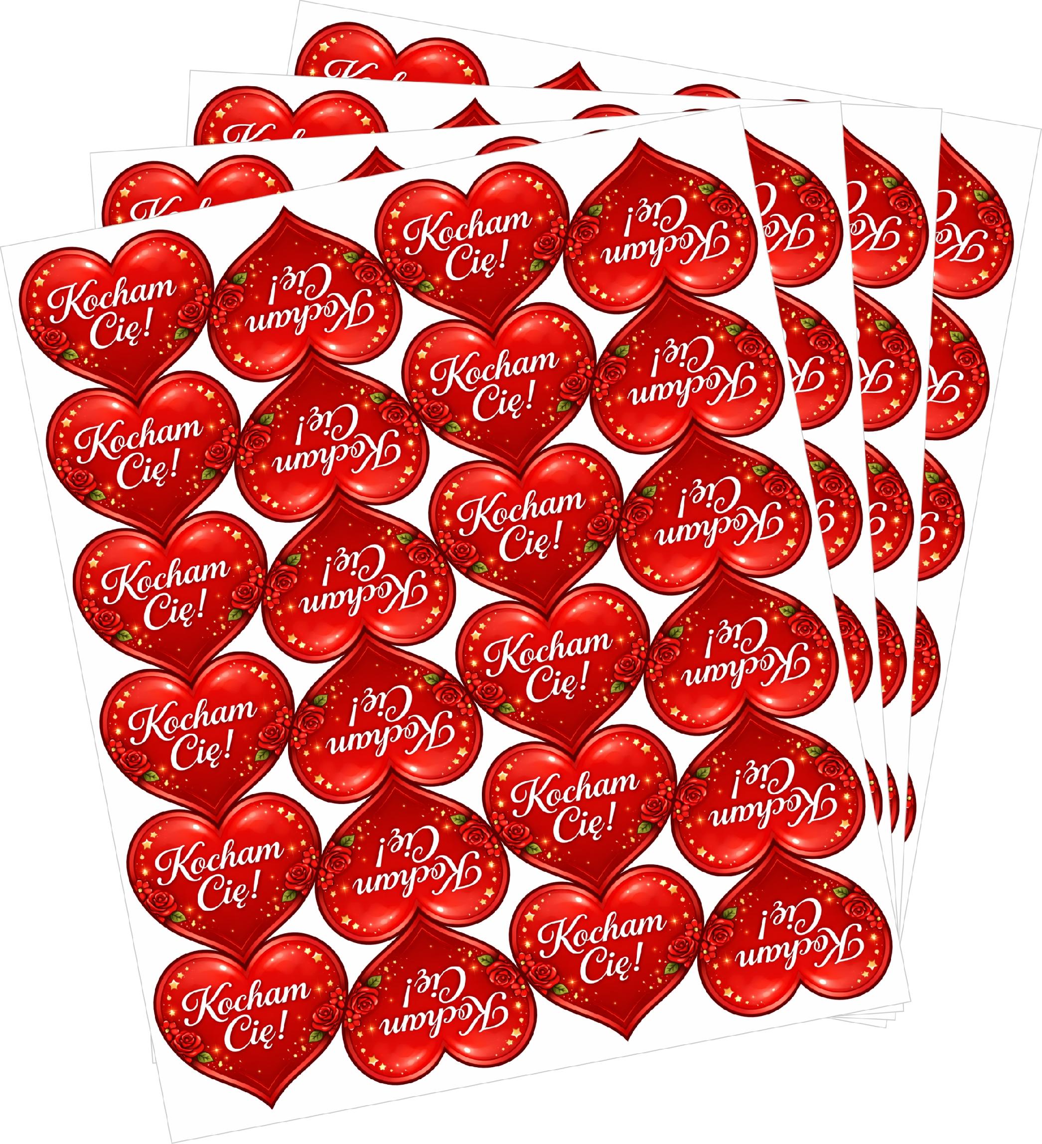 Naklejki „Kocham Cię!” wlepki na Walentynki | Serca | 5cm - 96szt