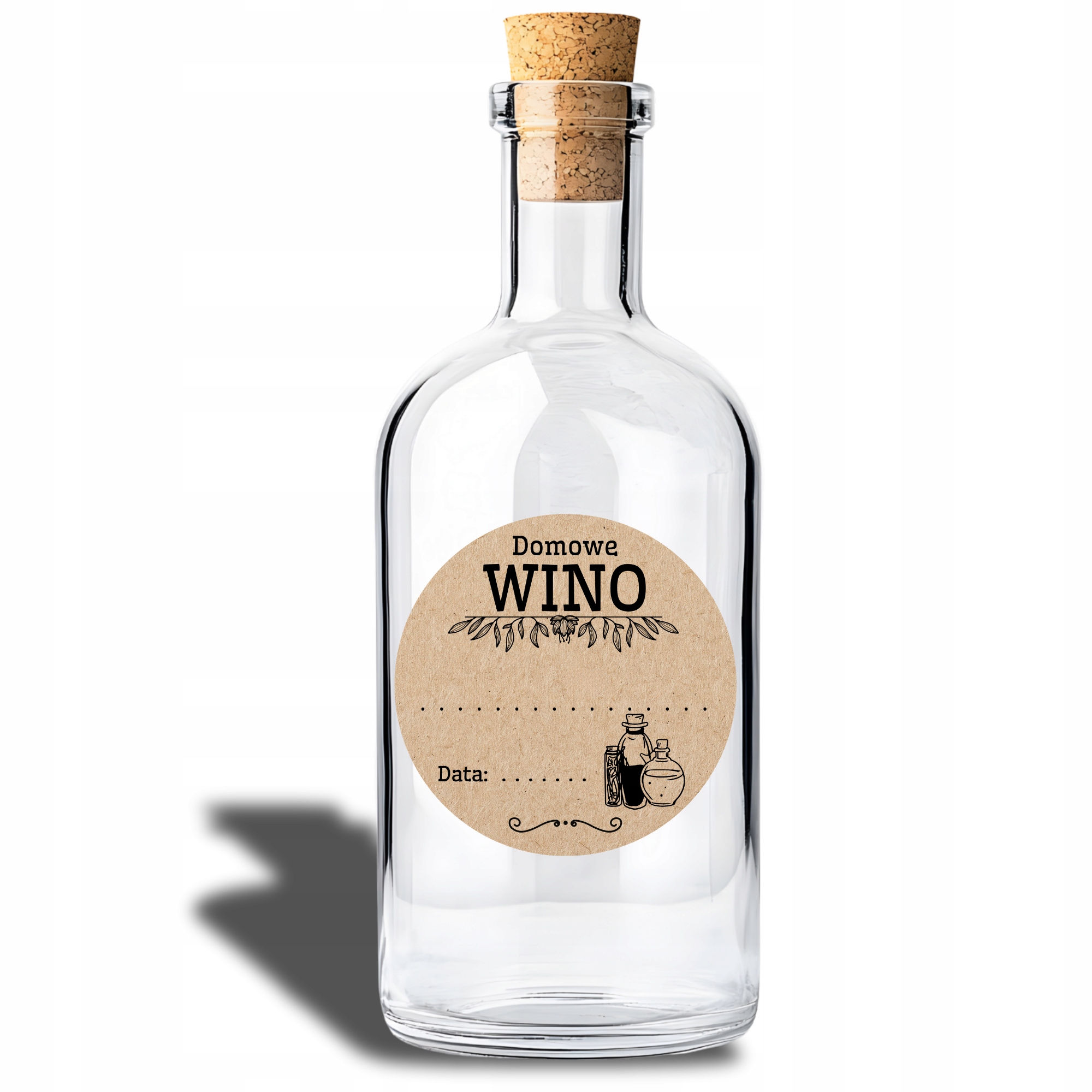 Stylowe naklejki papierowe w klimacie kraft / vintage z napisem „Domowe Wino” to idealne rozwiązanie do oznaczania domowych win owocowych i gronowych. Podkreślają rzemieślniczy charakter trunku i nadają butelkom estetyczny, tradycyjny wygląd.