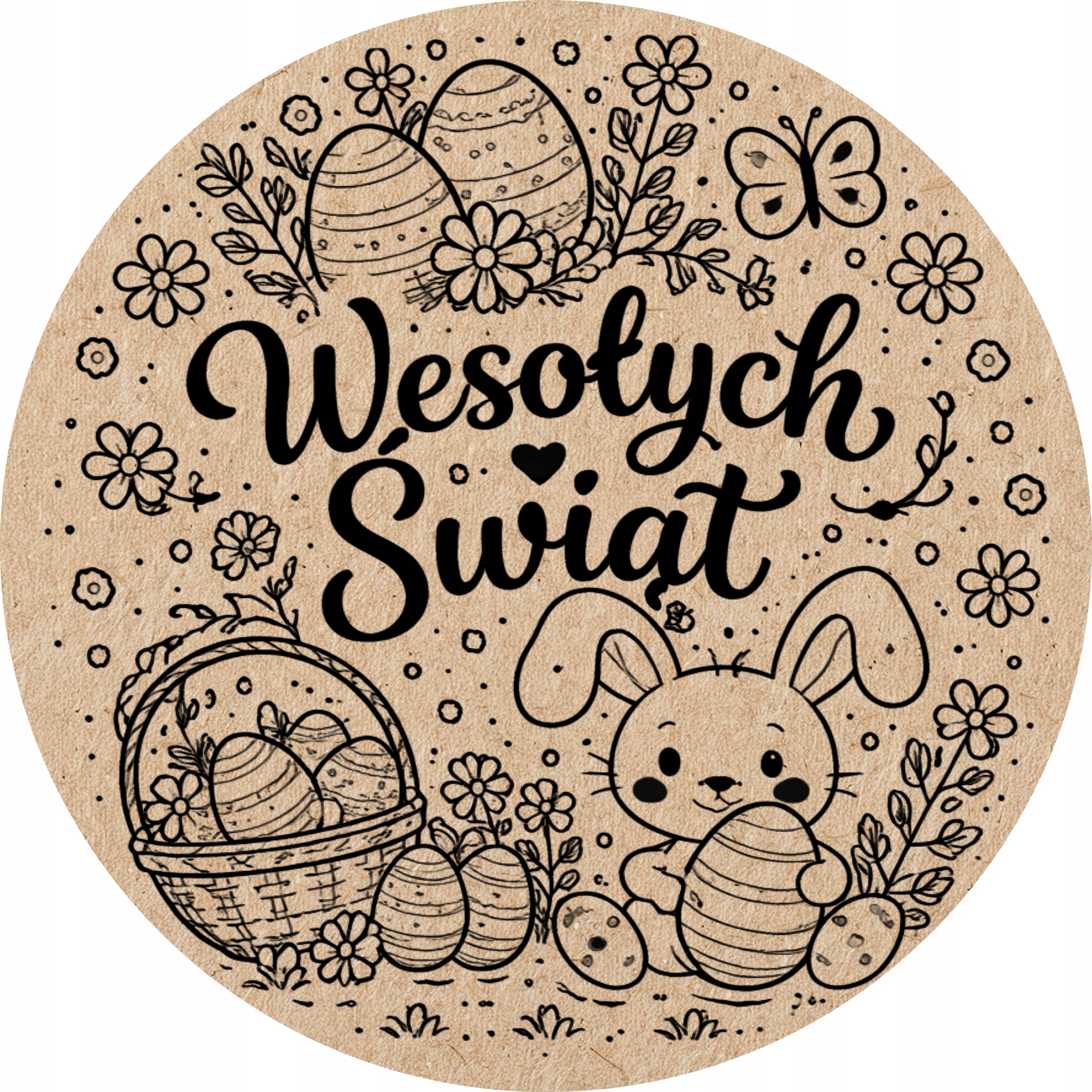 Motyw naturalnego tła i czarnej ilustracji sprawia, że naklejki wielkanocne prezentują się elegancko i ponadczasowo. To propozycja dla osób, które szukają dekoracji wielkanocnych bez nadmiaru kolorów, a jednocześnie chcą stworzyć ciepły, świąteczny klimat.